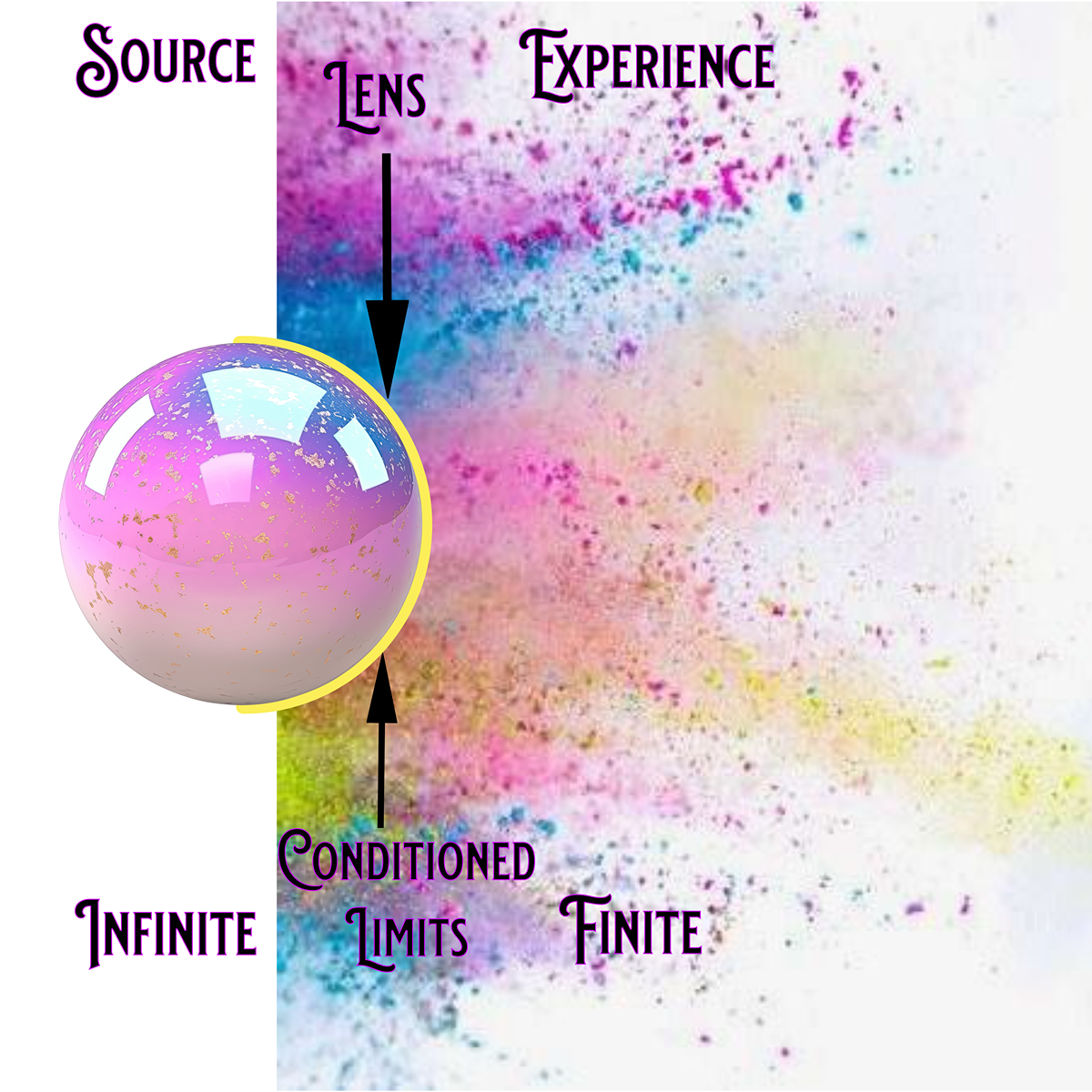 Pay attention to the lens (yellow line) through which you perceive/limit life. It makes the difference between what you think is happening and who you think you are. You are the white blank zone creating a world of colors and feelings. The light is within. Suffering is inevitable on the experience side. Decide accordingly.