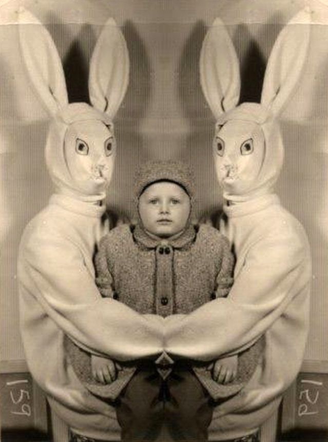 I had a dream the other night that students were dressed in rabbit suits and lobbing snowballs at each other across a walkway on campus. I knew something was funny, and creepy, about the situation, but sadly, did not wake up. I did think, “…this looks like a trap,” and wisely took another route, and so escaped without harm.